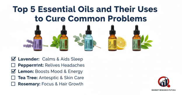 In addition to these five essential oils, other popular varieties such as peppermint, lemon, jasmine, and ylang-ylang oils offer unique therapeutic benefits. Essential oils are now infused in candles, incense sticks, room fresheners, deodorants, and personal care products, broadening their appeal to wellness-conscious consumers.