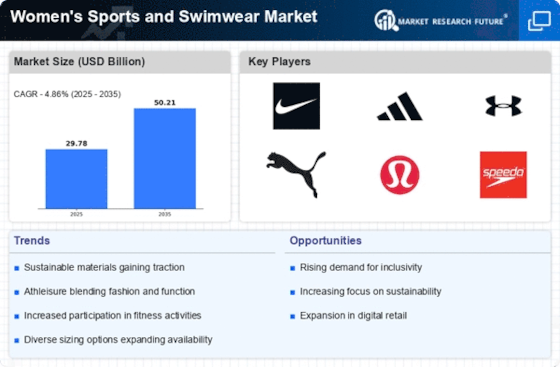 女性用スポーツおよび水着市場は、エコフレンドリーな製品への需要によってますます影響を受けています。消費者が環境意識を高めるにつれて、持続可能な素材や倫理的な製造方法への好みが高まっています。リサイクル生地の使用や廃棄物の削減など、エコフレンドリーな取り組みを採用するブランドは、忠実な顧客基盤を引き付ける可能性が高いです。最近の調査によると、消費者の約60%が持続可能な製品に対してプレミアムを支払う意欲があることが示されています。この持続可能性へのシフトは、消費者の価値観と一致するだけでなく、ブランドが競争の激しい市場で差別化する機会を提供します。したがって、女性用スポーツおよび水着市場は、このエコ意識の高いトレンドを受け入れることで成長の準備が整っています。