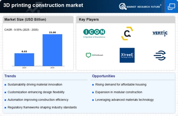 Europe's 3D printing construction market is gaining momentum, with a market size of 1.5B projected for 2025. The region is increasingly focused on sustainability and efficiency, driven by stringent regulations aimed at reducing carbon footprints in construction. Countries like Germany and the Netherlands are at the forefront, leveraging innovative technologies to meet rising housing demands while adhering to environmental standards. The competitive landscape features companies such as Vertico and COBOD International, which are leading the charge in 3D printing technology. The European market is characterized by collaboration between public and private sectors, fostering innovation and investment. As the region embraces digital transformation, the potential for growth in 3D printing construction remains significant, supported by favorable policies and funding initiatives.