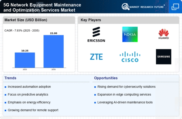 The Middle East and Africa region is gradually developing its 5G Network Equipment Maintenance and Optimization Services market, projected to reach 0.9 billion by 2025. This growth is driven by increasing mobile connectivity and government initiatives aimed at enhancing digital infrastructure. The region is witnessing a growing demand for high-speed internet services, which is expected to catalyze investments in 5G technologies and related services.