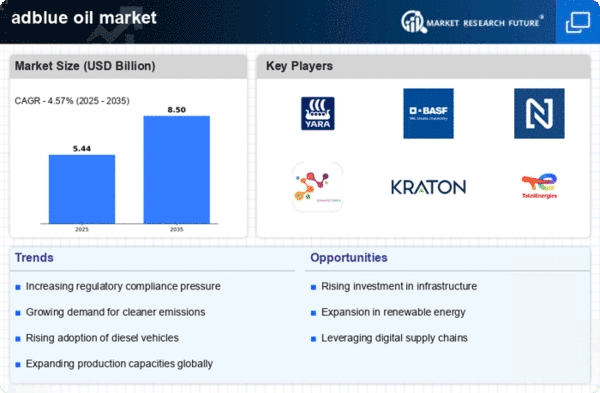 The adblue oil market is significantly influenced by stringent environmental regulations aimed at reducing nitrogen oxide emissions from diesel engines. Governments across various regions have implemented policies that mandate the use of adblue, a solution that helps in meeting these emissions standards. For instance, the European Union's Euro 6 standards have propelled the demand for adblue, as vehicles must comply with these regulations to operate legally. This regulatory framework not only drives the consumption of adblue but also encourages manufacturers to innovate and improve their products. As a result, the adblue oil market is expected to witness sustained growth, with projections indicating an increase in demand as more countries adopt similar regulations.