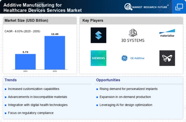 Europe's Additive Manufacturing for Healthcare Devices Services Market is projected to reach $1.5B by 2025, driven by increasing demand for customized medical solutions and regulatory support for innovative technologies. The region benefits from a strong emphasis on research and development, with numerous initiatives aimed at integrating 3D printing into healthcare practices. Regulatory bodies are actively promoting the use of additive manufacturing to enhance patient outcomes and reduce costs, fostering a conducive environment for market growth.