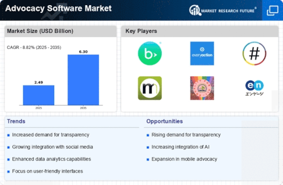 The Advocacy Software Market is significantly influenced by the integration of data analytics capabilities into advocacy platforms. Organizations are increasingly utilizing data-driven insights to inform their advocacy strategies and measure the effectiveness of their campaigns. The ability to analyze engagement metrics and audience behavior allows organizations to tailor their advocacy efforts more effectively. Recent studies suggest that organizations employing data analytics in their advocacy initiatives experience a 25% increase in campaign success rates. This trend highlights the importance of data analytics in optimizing advocacy efforts, thereby driving the growth of the advocacy software market as organizations seek to leverage technology for enhanced outcomes.