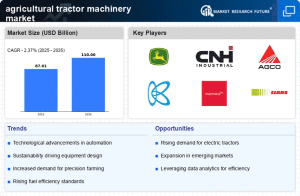 Europe accounts for 25.0% of the agricultural tractor machinery market, driven by a strong focus on sustainability and innovation. The region's agricultural policies encourage the adoption of eco-friendly technologies, which is a significant catalyst for market growth. Additionally, the increasing need for efficient farming practices and the rise in organic farming are propelling demand for advanced machinery that meets stringent environmental regulations. Germany, France, and the UK are the leading countries in this market, with key players like Claas KGaA and CNH Industrial leading the charge. The competitive landscape is marked by a strong emphasis on research and development, with companies investing heavily in new technologies. The presence of a well-established agricultural sector and supportive government initiatives further enhance the market's growth potential.