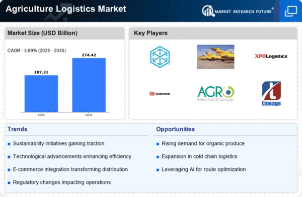 The Middle East and Africa region is emerging as a potential growth market in Agriculture Logistics, with a market size of 8.09. Key drivers include increasing agricultural production, government initiatives to enhance food security, and investments in logistics infrastructure. The region's strategic location as a trade hub further supports the growth of logistics services, catering to both local and international markets. Additionally, the rising demand for perishable goods is driving the need for efficient cold chain logistics solutions.