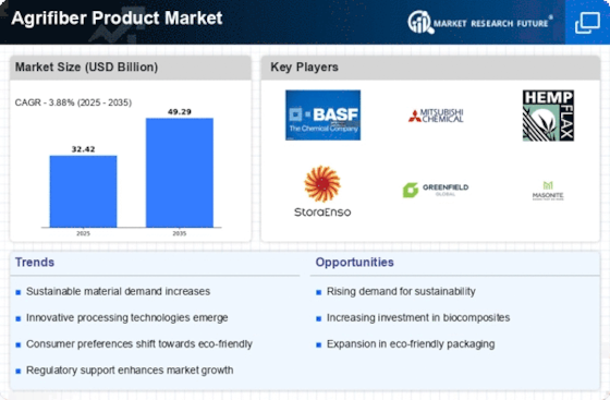 Government incentives for sustainable practices are playing a pivotal role in the Agrifiber Product Market. Various governments are implementing policies that promote the use of renewable resources and sustainable materials. These initiatives often include financial incentives, tax breaks, and grants for companies that invest in agrifiber technologies. In 2025, it is estimated that government support could lead to a 15% increase in the adoption of agrifiber products across multiple sectors. This regulatory support not only encourages innovation but also fosters a competitive environment for agrifiber manufacturers, ultimately benefiting the market as a whole.