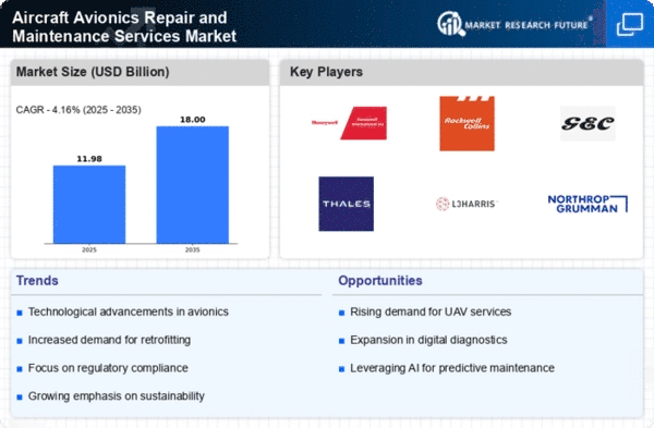 Europe's Aircraft Avionics Repair and Maintenance Services Market is projected to grow, with a market size of 3.0 in 2024. The region is witnessing increased demand due to rising air traffic and the need for compliance with stringent EU aviation regulations. Initiatives aimed at enhancing safety and efficiency in air travel are driving investments in avionics services. The European Union's focus on sustainable aviation practices is also a catalyst for market growth, encouraging innovation in repair and maintenance services.