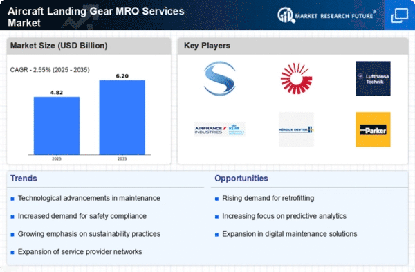 Europe's Aircraft Landing Gear MRO Services market is projected to reach 1.5 billion by 2025, driven by increasing air traffic and a growing fleet of aircraft. Regulatory frameworks, such as the European Union Aviation Safety Agency (EASA) guidelines, play a crucial role in ensuring safety and compliance, thereby enhancing market growth. The region's focus on sustainability and modernization of aircraft also contributes to the rising demand for MRO services.