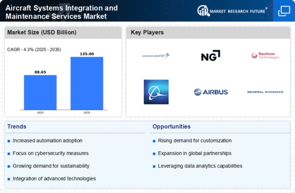 The Aircraft Systems Integration and Maintenance Services Market is characterized by a dynamic competitive landscape, driven by technological advancements and increasing demand for efficient aircraft operations. Key players such as Lockheed Martin (US), Boeing (US), and Airbus (FR) are strategically positioned to leverage their extensive experience and innovation capabilities. Lockheed Martin (US) focuses on integrating advanced technologies into military and commercial aircraft, while Boeing (US) emphasizes digital transformation and sustainability in its maintenance services. Airbus (FR), on the other hand, is enhancing its service offerings through partnerships aimed at improving operational efficiency and reducing lifecycle costs. Collectively, these strategies contribute to a competitive environment that is increasingly centered around technological innovation and customer-centric solutions.In terms of business tactics, companies are increasingly localizing manufacturing and optimizing supply chains to enhance responsiveness and reduce costs. The market structure appears moderately fragmented, with several key players exerting significant influence. This fragmentation allows for a variety of service offerings, yet the presence of major companies like Northrop Grumman (US) and Raytheon Technologies (US) suggests a competitive concentration in certain segments, particularly in defense-related services.