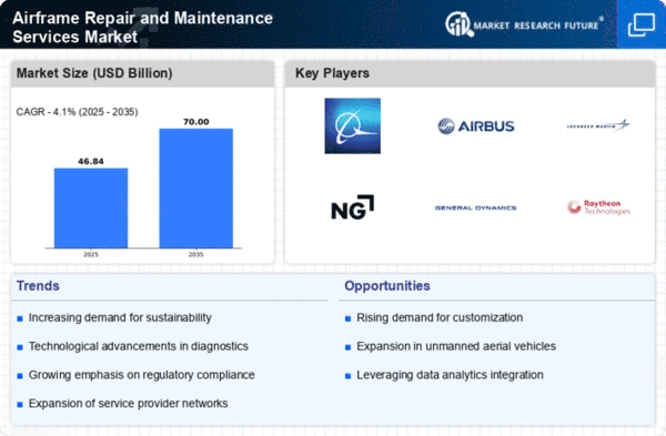 Europe's Airframe Repair and Maintenance Services Market is projected to reach $12.0 billion by 2025, driven by increasing air traffic and a focus on sustainability. The European Union's regulatory frameworks, such as EASA regulations, promote safety and environmental standards, encouraging investment in maintenance services. The region's commitment to reducing carbon emissions in aviation is also a significant growth driver, as airlines seek to comply with stringent regulations.
