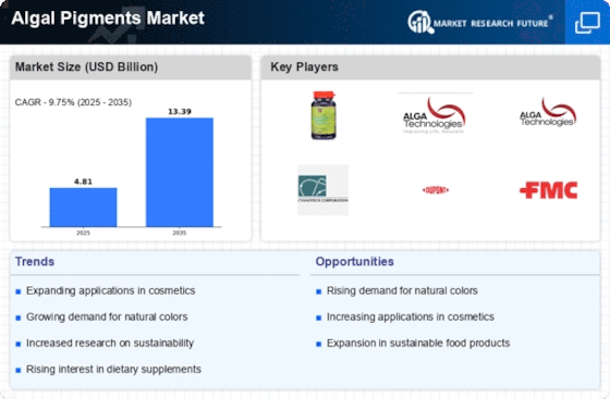 The Algal Pigments Market is witnessing an expansion of applications within the food and beverage sector. Algal pigments, such as chlorophyll and carotenoids, are increasingly utilized as natural colorants in various food products, including beverages, dairy, and confectionery. This trend is supported by regulatory approvals for the use of natural colorants, which enhances their marketability. The food industry is projected to grow at a compound annual growth rate of 5.5% through 2027, further driving the demand for algal pigments. As manufacturers seek to innovate and differentiate their products, the Algal Pigments Market is poised for growth, with an increasing number of food products incorporating these natural pigments to meet consumer expectations for clean label ingredients.