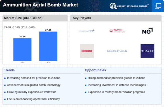 The ammunition Aerial Bomb Market is significantly influenced by the rising defense budgets of various nations. Governments are allocating larger portions of their budgets to enhance military capabilities, which includes the procurement of advanced aerial bombs. Recent reports indicate that defense spending has increased by approximately 3% annually, reflecting a global trend towards military modernization. This increase in funding allows for the acquisition of state-of-the-art munitions, thereby driving growth in the ammunition aerial bomb Market. As nations prioritize national security and military readiness, the demand for effective aerial bomb solutions is expected to rise, further stimulating market expansion.