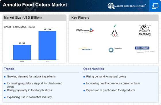 The annatto Food Colors Market benefits from a favorable regulatory environment that supports the use of natural colorants. Regulatory bodies in various regions are increasingly recognizing the safety and efficacy of natural food colors, including annatto, which has been approved for use in numerous applications. This regulatory support is crucial as it encourages manufacturers to adopt natural alternatives in their formulations. Furthermore, as regulations evolve to favor clean label products, the demand for annatto is expected to rise. The market for natural food colors is anticipated to reach approximately 3 billion dollars by 2027, with annatto playing a significant role in this growth. This regulatory landscape not only enhances consumer confidence but also positions the annatto food colors Market favorably against synthetic alternatives.