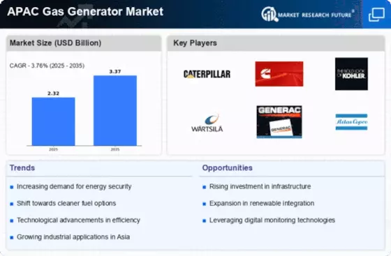 Key markets include major cities like Beijing, Shanghai, and Shenzhen, where industrial activities are concentrated. The competitive landscape features prominent players such as Caterpillar Inc, Cummins Inc, and Wärtsilä Corporation, all vying for market share. Local dynamics are characterized by a strong push towards renewable energy solutions, with gas generators being favored for their efficiency. Industries such as construction, telecommunications, and data centers are significant consumers of gas generators, further solidifying China's market position.