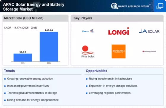 The APAC Solar Energy and Battery Storage Market presents substantial investment opportunities and growth potential. With the region's increasing focus on renewable energy, private and public sector investments are surging. According to recent reports, investments in renewable energy in Asia-Pacific reached over USD 100 billion in 2021, with solar energy and battery storage accounting for a significant portion of this figure. The growing interest from venture capitalists and institutional investors in clean energy technologies further underscores the market's attractiveness. Additionally, the emergence of innovative business models, such as energy-as-a-service and community solar projects, is likely to create new avenues for investment. As the APAC region continues to prioritize energy transition and sustainability, the Solar Energy and Battery Storage Market is expected to thrive, attracting diverse stakeholders and fostering economic growth.