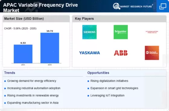 China holds a commanding market share of 2.21 in the APAC Variable Frequency Drive (VFD) market, driven by rapid industrialization and urbanization. Key growth drivers include the government's push for energy efficiency and automation in manufacturing. Demand trends show a significant shift towards smart manufacturing, with increasing consumption in sectors like HVAC, water treatment, and renewable energy. Regulatory policies, such as the Energy Efficiency Standards, further bolster this growth, alongside substantial investments in infrastructure development.