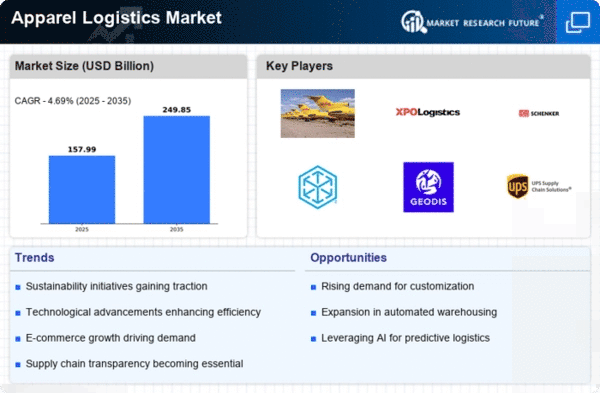 The Asia-Pacific region is witnessing rapid growth in the apparel logistics market, holding a 35.0% share. This growth is fueled by rising disposable incomes, urbanization, and a booming e-commerce sector. Countries in this region are increasingly adopting advanced logistics technologies and practices to meet the growing demand for efficient supply chain solutions. Regulatory initiatives aimed at improving logistics infrastructure further support this growth trajectory.