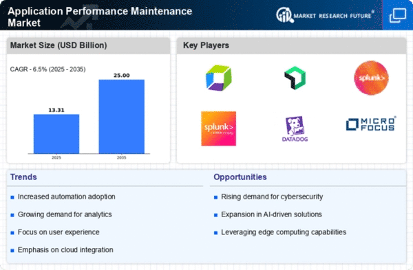 The Application Performance Maintenance Market is characterized by a dynamic competitive landscape, driven by the increasing demand for efficient application management and performance optimization. Key players such as Dynatrace (AT), New Relic (US), and AppDynamics (US) are at the forefront, each adopting distinct strategies to enhance their market positioning. Dynatrace (AT) emphasizes innovation through its AI-driven monitoring solutions, which allow for real-time insights and automated problem resolution. Meanwhile, New Relic (US) focuses on expanding its cloud-based offerings, catering to the growing trend of digital transformation across various industries. AppDynamics (US) leverages its strong integration capabilities with existing IT infrastructures, thereby appealing to enterprises seeking seamless performance management solutions. Collectively, these strategies contribute to a competitive environment that is increasingly centered around technological advancement and customer-centric solutions.In terms of business tactics, companies are increasingly localizing their operations and optimizing supply chains to enhance service delivery and responsiveness. The market structure appears moderately fragmented, with several players vying for market share while also forming strategic alliances to bolster their capabilities. This collective influence of key players fosters a competitive atmosphere where innovation and customer engagement are paramount.