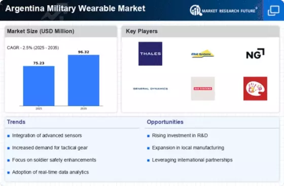 There is a growing emphasis on soldier safety within the Argentine military, which seems to drive the demand for advanced wearable technologies. The Argentina Military Wearable Market is likely to benefit from this focus, as wearables that monitor vital signs and environmental conditions can significantly enhance operational safety. For instance, devices that track heart rates, body temperature, and fatigue levels can provide real-time data to commanders, enabling timely interventions. This proactive approach to soldier welfare aligns with global trends in military modernization, where the integration of health-monitoring wearables is becoming standard practice. As the Argentine military prioritizes the well-being of its personnel, the market for innovative wearable solutions is expected to expand, potentially attracting both local and international manufacturers.