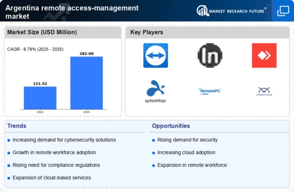 In Argentina, the remote access-management market is significantly influenced by the increasing prevalence of cyber threats. Organizations face a myriad of security challenges, including data breaches and unauthorized access attempts. Recent statistics reveal that cyberattacks in Argentina have risen by over 30% in the past year, prompting businesses to prioritize security measures. This heightened awareness of potential vulnerabilities drives the demand for comprehensive remote access-management solutions that offer robust security features. Companies are investing in technologies that provide encryption, multi-factor authentication, and real-time monitoring to safeguard sensitive information. As a result, the focus on cybersecurity becomes a pivotal driver in the remote access-management market, compelling organizations to adopt advanced solutions to mitigate risks.