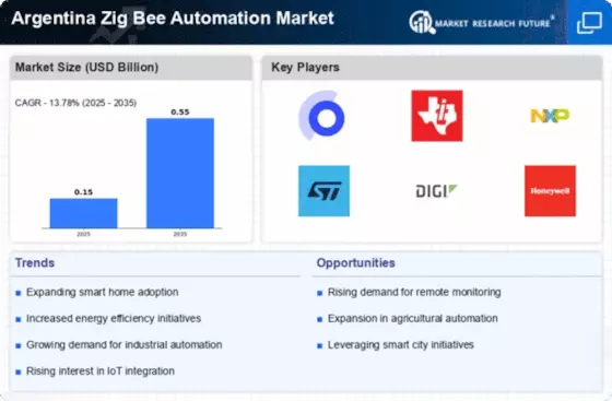 The Argentina Zig Bee Automation Market is likely to benefit from the increased investment in smart city initiatives across the country. Government policies aimed at urban modernization and infrastructure development are fostering an environment conducive to the adoption of smart technologies. In 2025, the Argentine government allocated approximately 500 million USD towards smart city projects, which include the integration of Zig Bee technology for efficient urban management. This investment is expected to enhance public services, improve energy management, and promote sustainable urban living, thereby driving demand for Zig Bee automation solutions in urban areas.