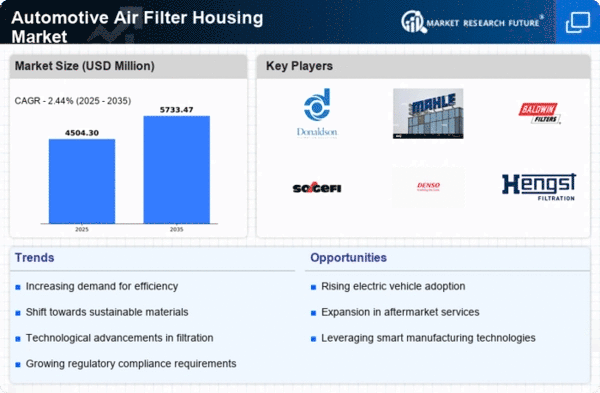 North America is poised to maintain its leadership in the automotive air filter housing market, holding a significant share of 2198.5 million. The region's growth is driven by increasing vehicle production, stringent emission regulations, and a rising focus on air quality. The demand for advanced filtration technologies is also on the rise, supported by government initiatives aimed at reducing vehicular emissions and enhancing fuel efficiency. The competitive landscape in North America is robust, featuring key players such as Donaldson Company, Inc., and K&N Engineering, Inc. The U.S. stands out as the largest market, driven by a strong automotive sector and innovation in filtration technologies. The presence of established manufacturers and ongoing investments in R&D further bolster the market, ensuring a steady supply of high-quality air filter housing solutions.