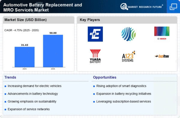 As of December the competitive trends in the Automotive Battery Replacement and MRO Services Market are heavily influenced by digitalization, sustainability, and the integration of artificial intelligence (AI) in battery management systems. Strategic alliances are becoming more prevalent, as companies recognize the need to collaborate to enhance their technological capabilities and market reach. Looking ahead, competitive differentiation is likely to evolve from traditional price-based competition to a focus on innovation, technology integration, and supply chain reliability. This shift may redefine how companies approach market entry and product development, emphasizing the importance of adaptability in a rapidly changing landscape.