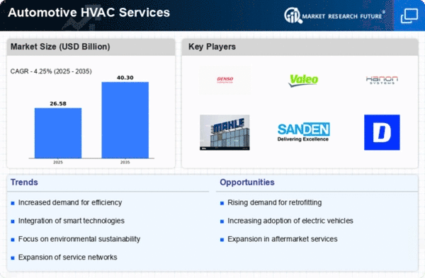 The Automotive HVAC Services Industry is significantly influenced by regulatory compliance and standards aimed at reducing environmental impact. Governments worldwide are implementing stringent regulations regarding emissions and energy efficiency, compelling manufacturers to enhance their HVAC systems. For example, the introduction of the European Union's CO2 emissions regulations has prompted automotive companies to invest in more efficient HVAC technologies. This regulatory landscape creates opportunities for HVAC service providers to offer solutions that not only comply with these standards but also promote sustainability. As a result, the industry is likely to witness a shift towards eco-friendly HVAC services that align with regulatory requirements.