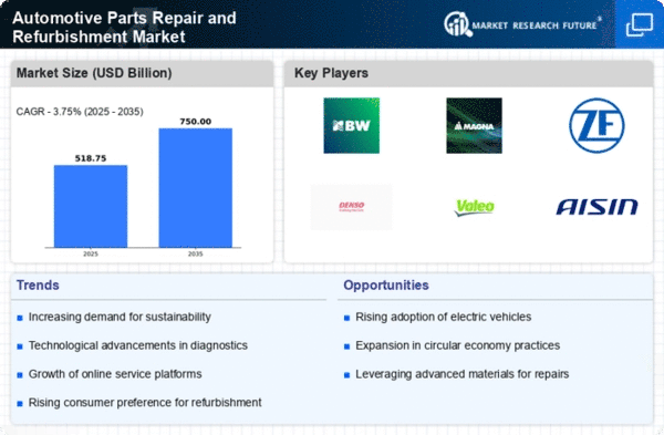 The Middle East and Africa region is gradually emerging in the Automotive Parts Repair and Refurbishment Market, with a market size of $20.0M projected for 2025. Key growth drivers include increasing vehicle ownership and a rising demand for affordable repair solutions. The region's diverse automotive landscape presents unique opportunities for local and international players to establish a foothold, particularly in countries with growing economies and expanding automotive sectors.
