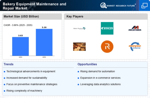 The Bakery Equipment Maintenance and Repair Market is significantly influenced by the rapid technological advancements in bakery equipment. Innovations such as automated mixing machines, high-efficiency ovens, and smart monitoring systems enhance the performance and reliability of bakery operations. As these technologies become more prevalent, the complexity of equipment increases, necessitating specialized maintenance and repair services. The integration of IoT devices allows for real-time monitoring of equipment performance, which can lead to predictive maintenance strategies. This proactive approach not only minimizes unexpected breakdowns but also extends the lifespan of the equipment. As a result, bakeries are increasingly investing in maintenance services that can keep pace with these technological advancements, thereby driving growth in the Bakery Equipment Maintenance and Repair Market.