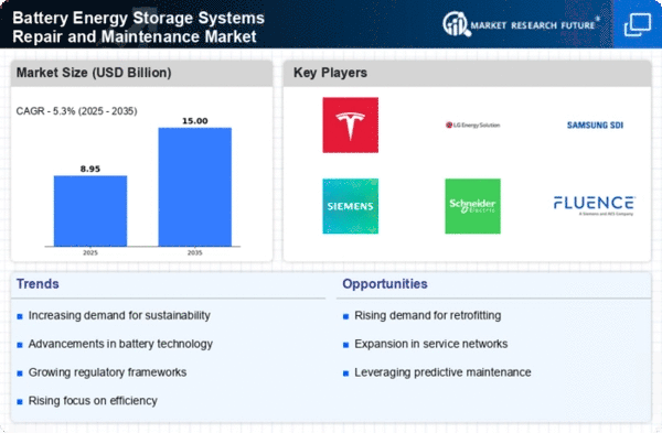 The Middle East and Africa represent an emerging market in the Battery Energy Storage Systems Repair and Maintenance sector, with a market size of $0.8 billion anticipated by 2025. The region's growth is driven by increasing investments in renewable energy projects and a growing awareness of energy efficiency. Governments are beginning to recognize the importance of energy storage in achieving sustainability goals, which is expected to catalyze market development.
