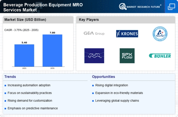 Europe's Beverage Production Equipment MRO Services Market is valued at $1.5B, reflecting a growing trend towards modernization and efficiency in beverage production. The region is witnessing increased investments in automation and smart technologies, driven by regulatory frameworks aimed at enhancing food safety and sustainability. These factors are expected to propel the market forward, as companies seek to comply with stringent EU regulations while optimizing their operations.