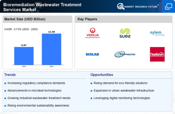 Governments worldwide are implementing increasingly stringent environmental regulations aimed at reducing pollution and promoting sustainable practices. These regulations often mandate the treatment of wastewater before discharge, creating a robust demand for bioremediation services. The Bioremediation Wastewater Treatment Services Market is likely to experience growth as industries strive to meet compliance standards. For instance, regulations such as the Clean Water Act in the United States impose strict limits on the discharge of pollutants, compelling industries to adopt advanced treatment technologies. This regulatory landscape not only drives the demand for bioremediation services but also encourages innovation in treatment methodologies, ensuring that companies remain compliant while minimizing their environmental impact.
