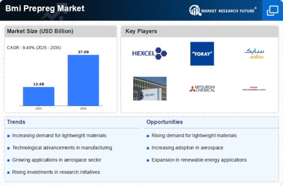 The Bmi Prepreg Market is witnessing emerging applications in the sports equipment sector, where performance and durability are critical. High-performance sports gear, such as bicycles, tennis rackets, and golf clubs, increasingly utilize BMI prepregs due to their lightweight and high-strength characteristics. The sports equipment market is projected to grow steadily, driven by consumer demand for advanced materials that enhance performance. This trend suggests that the Bmi Prepreg Market may expand its reach into new segments, capitalizing on the growing interest in high-quality, performance-oriented sports products.