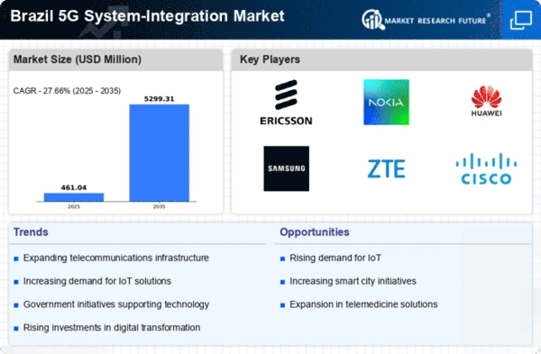 The emergence of IoT applications is significantly influencing the 5G System-Integration Market in Brazil. With the proliferation of connected devices, the demand for seamless integration of these devices into 5G networks is increasing. In 2025, it is projected that Brazil will have over 200 million IoT devices connected, creating a substantial need for efficient system integration solutions. This trend is particularly evident in sectors such as agriculture, healthcare, and transportation, where IoT applications can enhance operational efficiency and data management. The integration of 5G systems is essential for enabling real-time data processing and communication among IoT devices, thereby driving market growth and innovation in various industries.