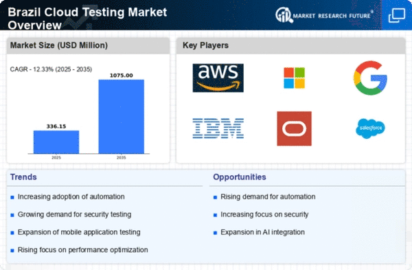 Brazilian enterprises are actively pursuing digital transformation initiatives, which significantly impacts the cloud testing market. As businesses transition to digital platforms, the complexity of applications increases, necessitating robust testing solutions. The cloud testing market is poised to benefit from this trend, as organizations seek to ensure the reliability and performance of their digital offerings. Recent data indicates that over 70% of Brazilian companies are investing in cloud technologies to enhance operational efficiency. This investment is likely to drive demand for cloud testing services, as companies require comprehensive testing strategies to validate their digital transformations.