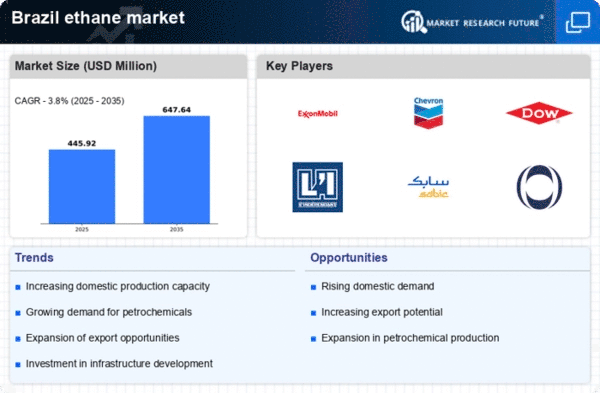 The ethane market in Brazil is characterized by a competitive landscape that is increasingly shaped by strategic initiatives from key players. Major companies such as ExxonMobil (US), Chevron (US), and Dow (US) are actively pursuing growth through innovation and regional expansion. ExxonMobil (US) has focused on enhancing its production capabilities, while Chevron (US) emphasizes sustainable practices in its operations. Dow (US) is leveraging its technological advancements to optimize ethane processing, thereby positioning itself as a leader in efficiency and sustainability. Collectively, these strategies contribute to a dynamic competitive environment, where innovation and operational excellence are paramount.In terms of business tactics, companies are increasingly localizing manufacturing and optimizing supply chains to enhance efficiency and reduce costs. The market structure appears moderately fragmented, with several key players exerting influence over pricing and supply dynamics. This fragmentation allows for a variety of competitive strategies, as companies seek to differentiate themselves through unique value propositions and operational efficiencies.