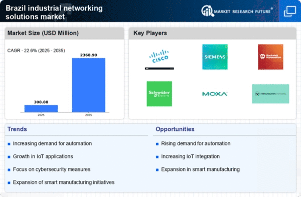 Interoperability has emerged as a critical driver for the industrial networking-solutions market in Brazil. As industries adopt diverse technologies and systems, the ability to ensure seamless communication between these systems becomes paramount. This need for interoperability is particularly pronounced in sectors such as automotive and aerospace, where complex supply chains necessitate robust networking solutions. Companies are increasingly investing in technologies that enable different systems to work together efficiently, thereby enhancing overall productivity. The market for interoperability solutions is projected to grow by 12% in Brazil, reflecting the increasing importance of integrated networking solutions.