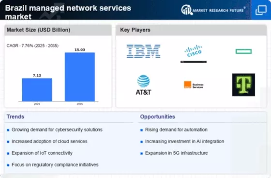 The increasing adoption of Internet of Things (IoT) technologies in Brazil is a pivotal driver for the Brazil managed network services market. As businesses integrate IoT devices into their operations, the demand for robust network management solutions escalates. According to recent data, the IoT market in Brazil is projected to reach USD 10 billion by 2025, indicating a substantial growth trajectory. This surge necessitates managed network services to ensure seamless connectivity, data management, and security. Companies are increasingly seeking specialized services to handle the complexities associated with IoT deployments, thereby propelling the managed network services market forward. The ability to efficiently manage vast networks of interconnected devices is becoming essential for operational efficiency and competitive advantage in various sectors, including manufacturing, agriculture, and smart cities.