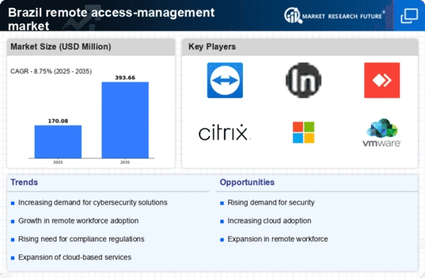 The escalating frequency of cyber threats poses a significant challenge for organizations in Brazil, thereby driving the demand for advanced solutions in the remote access-management market. Cyberattacks, including phishing and ransomware, have become increasingly sophisticated, prompting businesses to prioritize security measures. Recent statistics indicate that over 60% of Brazilian companies have reported experiencing cyber incidents, underscoring the urgent need for effective access management systems. This heightened awareness of security vulnerabilities is likely to propel investments in remote access solutions that offer robust authentication and encryption features. Consequently, the remote access-management market is expected to expand as organizations seek to safeguard their digital assets against evolving cyber threats.