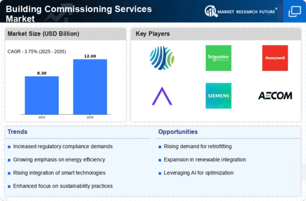 The Building Commissioning Services Market is increasingly influenced by regulatory pressures aimed at enhancing building performance and safety. Governments and regulatory bodies are implementing stringent codes and standards that mandate compliance with energy efficiency and sustainability benchmarks. For instance, many regions have adopted regulations that require energy audits and commissioning processes for new constructions and major renovations. This regulatory landscape is compelling building owners and developers to invest in commissioning services to ensure compliance and avoid potential penalties. As a result, the demand for professional commissioning services is expected to rise, as stakeholders seek to navigate the complexities of regulatory requirements. This trend not only supports the growth of the Building Commissioning Services Market but also promotes a culture of accountability and transparency in building operations.