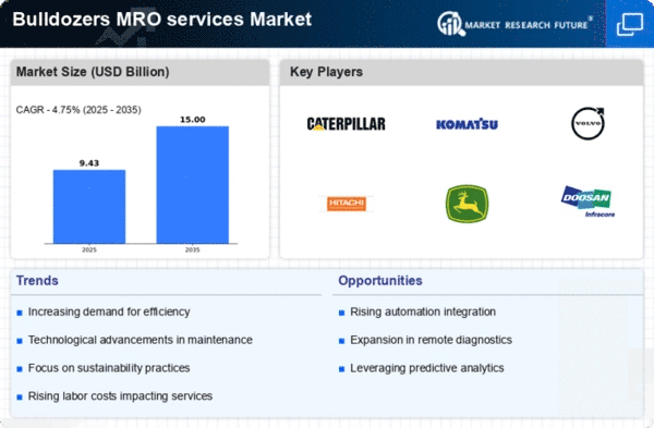 Europe's Bulldozers MRO services market is on a growth trajectory, with a market size of 2.5 in 2024. The region benefits from increasing investments in infrastructure and a shift towards sustainable construction practices. Regulatory frameworks promoting environmental standards and safety regulations are key drivers of market growth, enhancing the demand for efficient MRO services across member states.