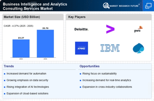Europe's Business Intelligence and Analytics Consulting Services market is valued at €6.7 billion, reflecting a growing demand for data-driven solutions across various sectors. The region benefits from stringent data protection regulations, such as GDPR, which encourage organizations to adopt advanced analytics while ensuring compliance. This regulatory framework acts as a catalyst for growth, pushing businesses to invest in consulting services that enhance their data capabilities.