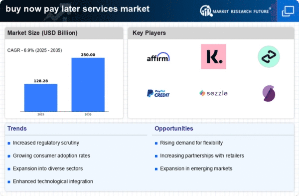 North America is poised to maintain its leadership in the buy now pay later (BNPL) services market, holding a significant 60.0% share as of December 2025. The growth is driven by increasing consumer demand for flexible payment options, particularly among younger demographics. Regulatory support and the rise of e-commerce have further catalyzed this trend, making BNPL a preferred choice for many consumers seeking convenience and affordability. The competitive landscape is robust, with key players like Affirm, PayPal Credit, and Sezzle leading the charge. These companies are innovating to enhance user experience and expand their offerings. The U.S. market, in particular, is characterized by a high adoption rate of BNPL services, with consumers increasingly favoring these options for both online and in-store purchases. This trend is expected to continue as more retailers integrate BNPL solutions into their payment systems.