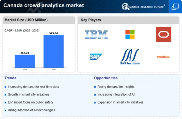 The crowd analytics market in Canada is experiencing a notable surge in demand for real-time data analysis. Organizations across various sectors, including retail, transportation, and event management, are increasingly recognizing the value of immediate insights derived from crowd behavior. This trend is driven by the need for timely decision-making, which can enhance operational efficiency and customer satisfaction. According to recent estimates, the market is projected to grow at a CAGR of approximately 25% over the next five years. This growth is indicative of a broader shift towards data-driven strategies, where businesses leverage crowd analytics to optimize resource allocation and improve service delivery. As a result, the crowd analytics market is becoming an essential tool for organizations aiming to stay competitive in a rapidly evolving landscape.