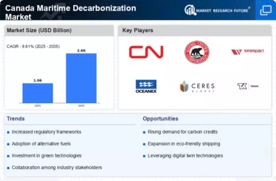 Investment in green technologies is a pivotal driver for the Canada Maritime Decarbonization Market. The Canadian government, alongside private sector stakeholders, is channeling substantial funds into research and development of innovative solutions aimed at reducing emissions. For instance, the investment in battery-powered vessels and hydrogen fuel cells is gaining traction, with several pilot projects underway. According to recent data, the Canadian government has allocated over CAD 100 million to support clean technology initiatives in the maritime sector. This financial backing not only stimulates technological advancements but also encourages collaboration among industry players, fostering a competitive landscape that prioritizes sustainability. As these investments materialize, they are likely to enhance the operational efficiency of maritime operations, thereby driving the decarbonization agenda forward.
