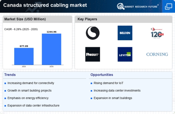 The growth of smart buildings in Canada is a significant driver for the structured cabling market. As urbanization continues to rise, the demand for intelligent building solutions that enhance energy efficiency and occupant comfort is increasing. Smart buildings rely heavily on structured cabling systems to support various technologies, including IoT devices, security systems, and energy management solutions. By 2025, the smart building market in Canada is projected to reach $10 billion, indicating a robust growth potential. This trend necessitates the implementation of advanced cabling infrastructures that can accommodate the diverse range of connected devices and systems. Consequently, the structured cabling market is likely to benefit from this shift towards smart building technologies, as organizations seek to create more efficient and interconnected environments.