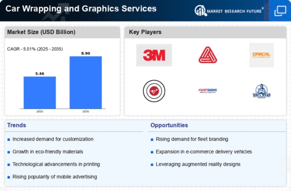 As of December the competitive trends in the Car Wrapping and Graphics Services market are increasingly influenced by digitalization, sustainability, and the integration of artificial intelligence. Strategic alliances are becoming more prevalent, as companies seek to leverage complementary strengths to enhance their market offerings. The shift from price-based competition to a focus on innovation and technology is evident, with companies prioritizing supply chain reliability and product differentiation. Looking ahead, it appears that competitive differentiation will increasingly hinge on the ability to innovate and adapt to changing consumer preferences, particularly in the realms of sustainability and digital engagement.