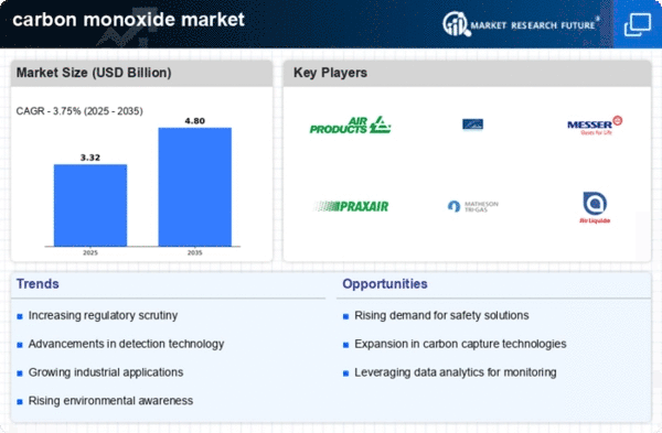 The Middle East and Africa region, with a market size of 0.1, is still in the nascent stages of carbon monoxide market development. The growth is hindered by infrastructural challenges and limited industrial applications. However, there is a growing interest in utilizing carbon monoxide for energy and chemical production, driven by the need for diversification in energy sources and economic development. Countries like South Africa and the UAE are beginning to explore opportunities in this market, albeit at a slower pace. The competitive landscape is less developed, with fewer key players compared to other regions. As investments in infrastructure and technology increase, the carbon monoxide market in this region may see gradual growth, supported by government initiatives aimed at enhancing industrial capabilities.