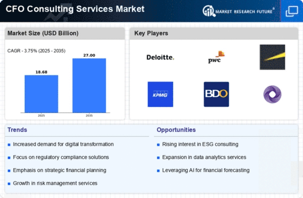 The CFO Consulting Services Market is experiencing a notable increase in demand due to the growing complexity of financial regulations. Organizations are facing an ever-evolving landscape of compliance requirements, which necessitates expert guidance. As regulations become more intricate, CFO consulting services are sought to navigate these challenges effectively. In recent years, the number of regulatory changes has surged, compelling companies to seek external expertise to ensure compliance and mitigate risks. This trend is likely to continue, as businesses recognize the importance of adhering to regulations to avoid penalties and maintain their reputations. Consequently, the demand for CFO consulting services is expected to rise, as firms look for specialized knowledge to help them stay compliant in a dynamic regulatory environment.